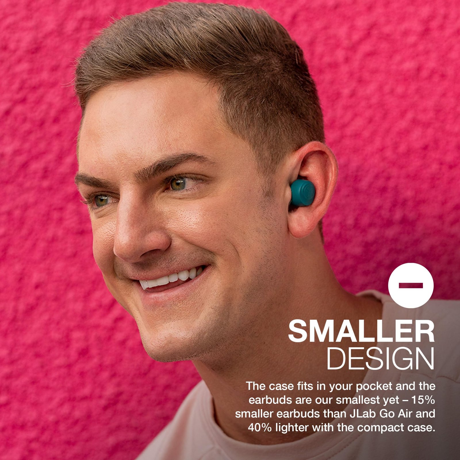 • SMALLER FIT EAR BUDS: Smaller than a credit card, the Go Pop+ buds case fits in your pocket and the Bluetooth earbuds are our smallest yet; 15% smaller and 40% lighter with the small case, than the Go Air wireless earphones. Ideal for the gym, sport or to carry while running. Try the three tip sizes to get a snug in ear headphones fit and creating a perfect seal for crystal clear sound