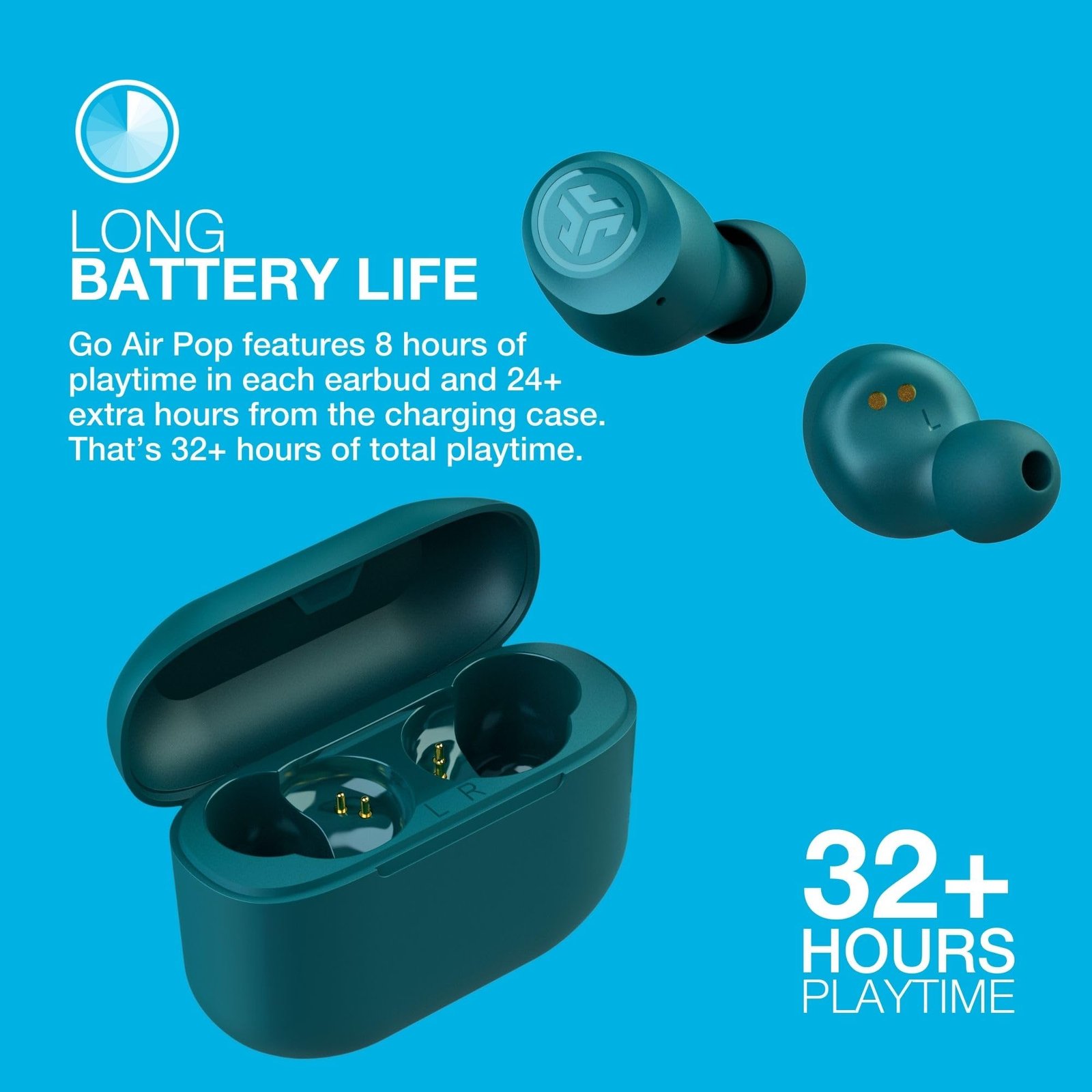 • BATTERY LIFE: Listen for the long battery life with your wireless earphones; stay for the comfort. GO Pop+ features 8 hours of playtime in each earbud and 24+ extra hours from the charging case. That’s 32+ hours of playtime with your tws earbuds